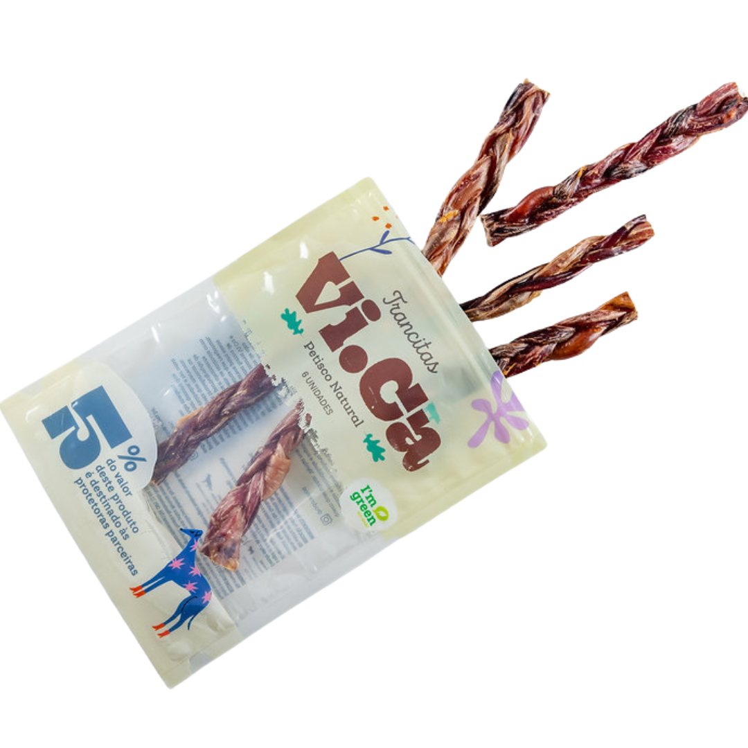 Delicioso petisco natural para cachorros. Sem glúten, conservantes nem resíduos químicos.